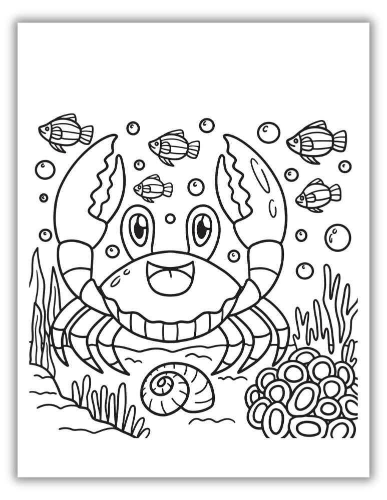 While not a crab, this unique page features an array of swirly shells, perfect for adding some variety to your ocean-themed coloring session. You can let your creativity shine by using vibrant or pastel colors for this design.