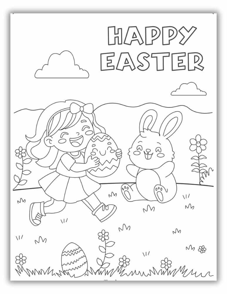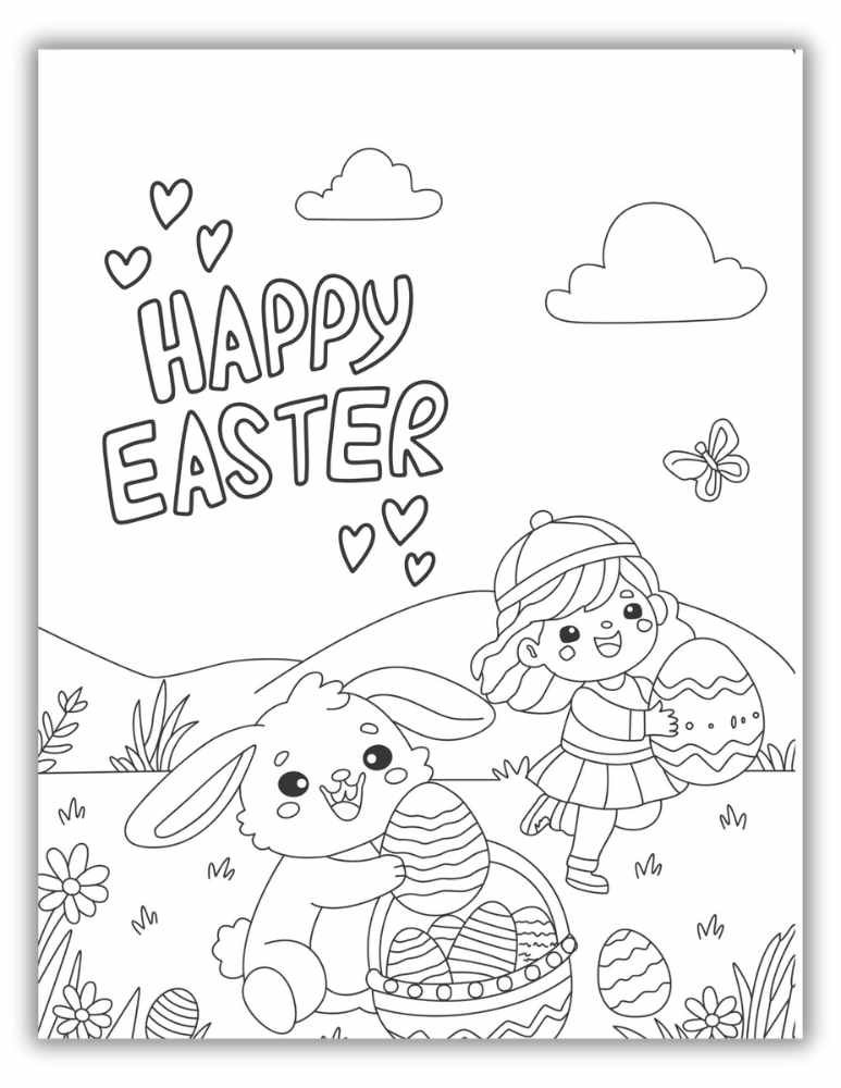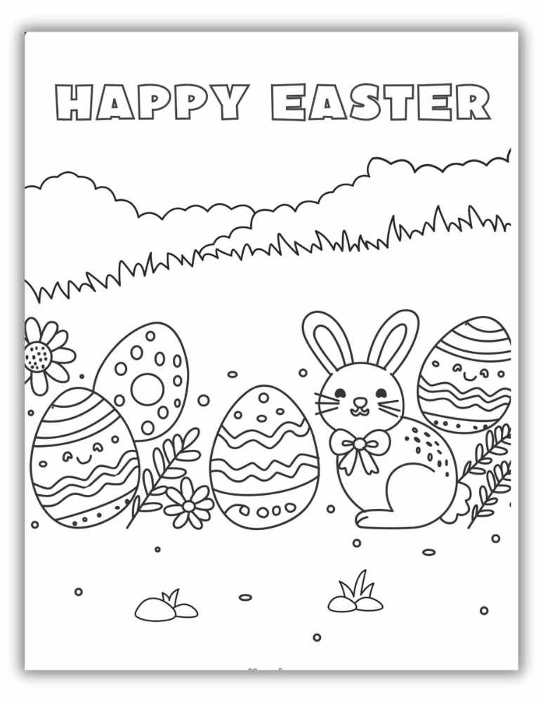 - Baby Bunny Scene – A softer, easier page with a little bunny sitting in a field of eggs and flowers. Great for toddlers or preschoolers.
