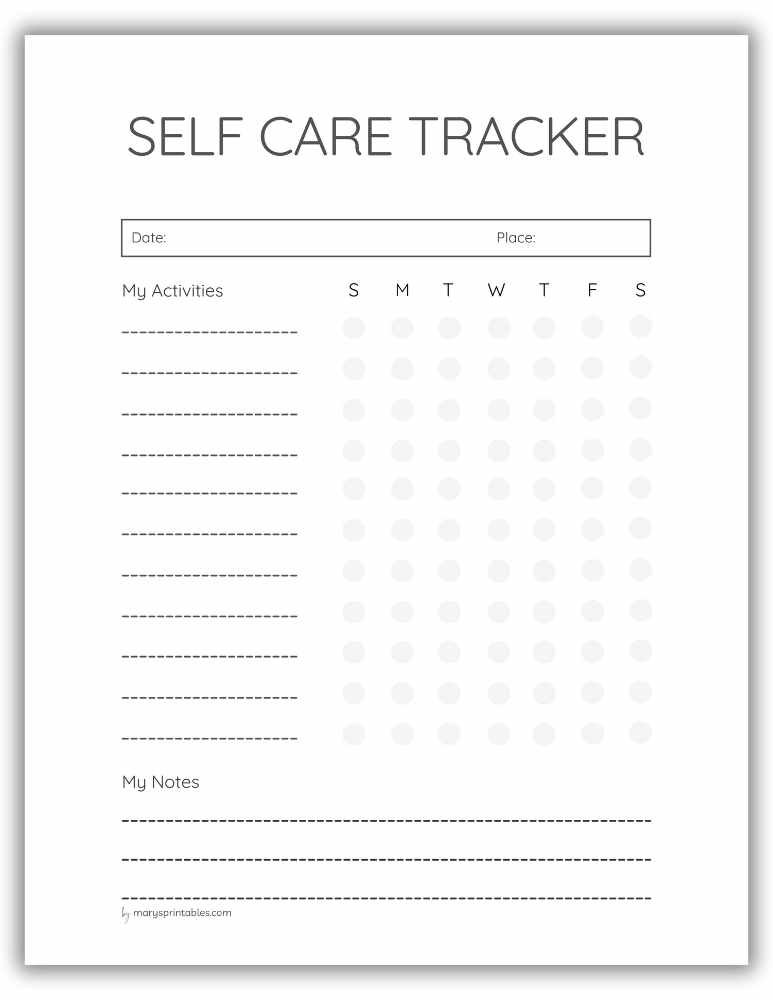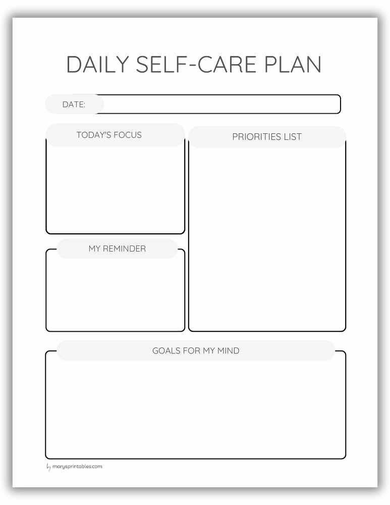 Printable self-care intention page for daily focus